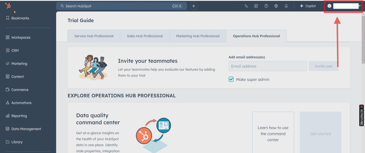 Once logged in, look for your HubSpot account icon in the upper-right corner of the screen.