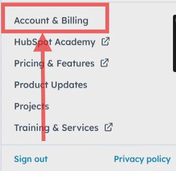 In your HubSpot profile settings, find and click Account & Billing.